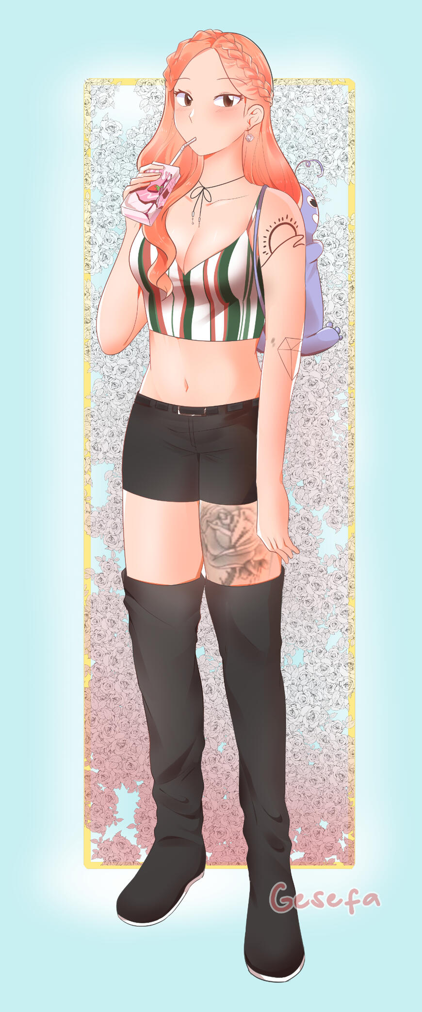 Rendered with reddish shade and lineart, suited for saturated color palettes